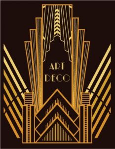 Este estilo se caracteriza por tener líneas marcadas y severas en tonos dorados y formas geométricas, líneas paralelas y arcos; podemos encontrar esta clase de trazos en todos los ámbitos de diseño, desde pequeños objetos hasta grandes construcciones al rededor del mundo. Lo hemos visto plasmado en campos como diseño de modas, industrial, arquitectura, joyería, muebles, cerámica y platería, publicidad, logotipos, diseño de producto y empaque, tipografías, interiorismo y decoración en general.